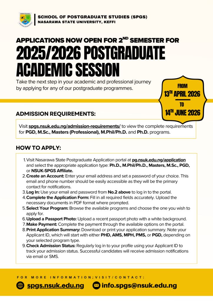 You are currently viewing APPLICATIONS NOW OPEN FOR 2ND SEMESTER FOR 2025/2026 POSTGRADUATE ACADEMIC SESSION